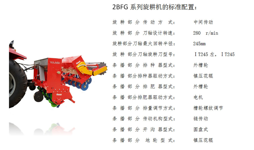 旋耕施肥播種機是一款多功能農(nóng)業(yè)機械設(shè)備,它集旋耕、施肥、播種、覆土、鎮(zhèn)壓于一體,一次作業(yè)可完成多項任務(wù),減少機械進(jìn)地次數(shù),節(jié)約成本。微電腦電機控制施肥,無級調(diào)速,專用設(shè)計不銹鋼導(dǎo)肥槽,保證撒肥面積均勻,鎮(zhèn)壓輥后驅(qū)動,增加防滑裝置,保證播種質(zhì)量,配套圓盤開溝器,保證種子落地準(zhǔn)確,防止纏草,一機多用,經(jīng)過調(diào)整可以切換為花生平播或壟播,小麥、旱稻、油菜、高梁平播等多種狀態(tài)。主要功能如下: