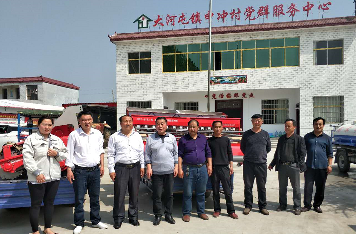 協(xié)議簽署好后,公司郭經(jīng)理、公司工會主席耿莉莉同縣百企辦逯亞森主任、大河屯鎮(zhèn)張珀副書記、申沖村申主任以及申沖村拖拉機(jī)手合影。