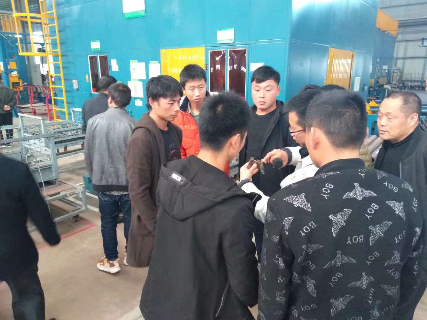 次日上午,公司又安排所有農(nóng)機(jī)合作社來(lái)到我們的制造車(chē)間,王經(jīng)理給大家實(shí)地講解每一臺(tái)機(jī)具的制造流程及生產(chǎn)工藝。