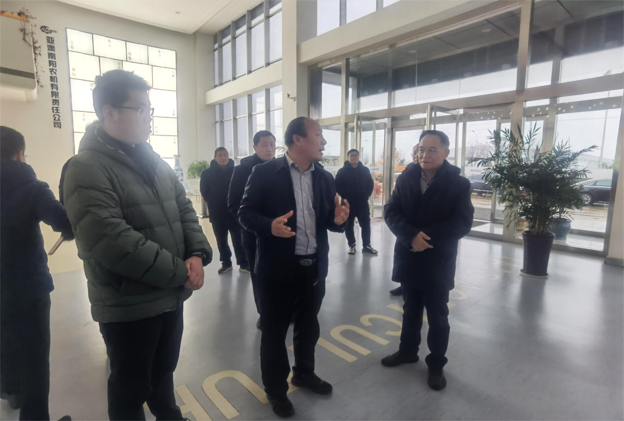 2023年12月15日,國務院國資委三農院士專家組副組長陸永忠院士在唐河縣政府副縣長方明帶領下來到亞澳農機走訪調研,國電投融晟(廣東)新能源有限公司副總經理洪萬斌 、國電投融晟(廣東)新能源有限公司項目總監(jiān)于宏磊等陪同調研。
