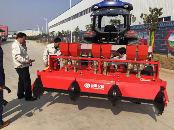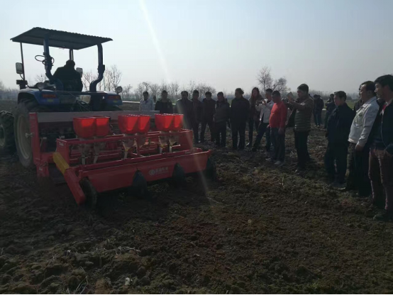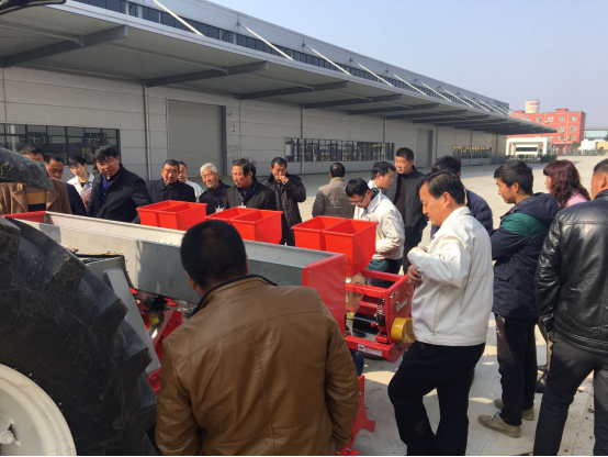 現(xiàn)場會(huì)上,亞澳專業(yè)技術(shù)人員及銷售經(jīng)理對我廠新研發(fā)的花生精量播種機(jī)做了詳細(xì)介紹,各鄉(xiāng)鎮(zhèn)社員及各站站長針對花生種植技術(shù)、施肥方法和機(jī)械化播種等方面做了詳細(xì)講解。隨后,60名用戶和農(nóng)技人員一同觀摩了機(jī)械化播種演示。