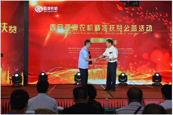 開機(jī)儀式上,中國農(nóng)機(jī)化協(xié)會還就“甘肅省蘭州市永登縣”精準(zhǔn)扶貧工作給予亞澳高度的認(rèn)可。永登縣團(tuán)莊村屬干旱貧困山區(qū),全村現(xiàn)有7個村民小組,421戶、1696人。近年來,幫扶單位先后捐贈了30多臺(套)特色農(nóng)機(jī)具,但仍缺少大中型農(nóng)機(jī)具,農(nóng)機(jī)化服務(wù)能力不足,不能滿足農(nóng)業(yè)生產(chǎn)需求。此次中國農(nóng)業(yè)機(jī)械化協(xié)會聯(lián)合亞澳公司等有關(guān)單位向團(tuán)莊村捐贈價值40多萬元農(nóng)業(yè)機(jī)械,必將對團(tuán)莊和周邊鄉(xiāng)村農(nóng)業(yè)和農(nóng)村經(jīng)濟(jì)發(fā)展、全面建設(shè)小康社會起到很大地推進(jìn)作用。